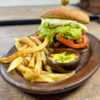 Papas fritas, carne de res, champiñones, crema, zumo de limón, jugo de pepinillo dill, caldo reducción de vacuno, salsa de tomate y agregado de cebollín.